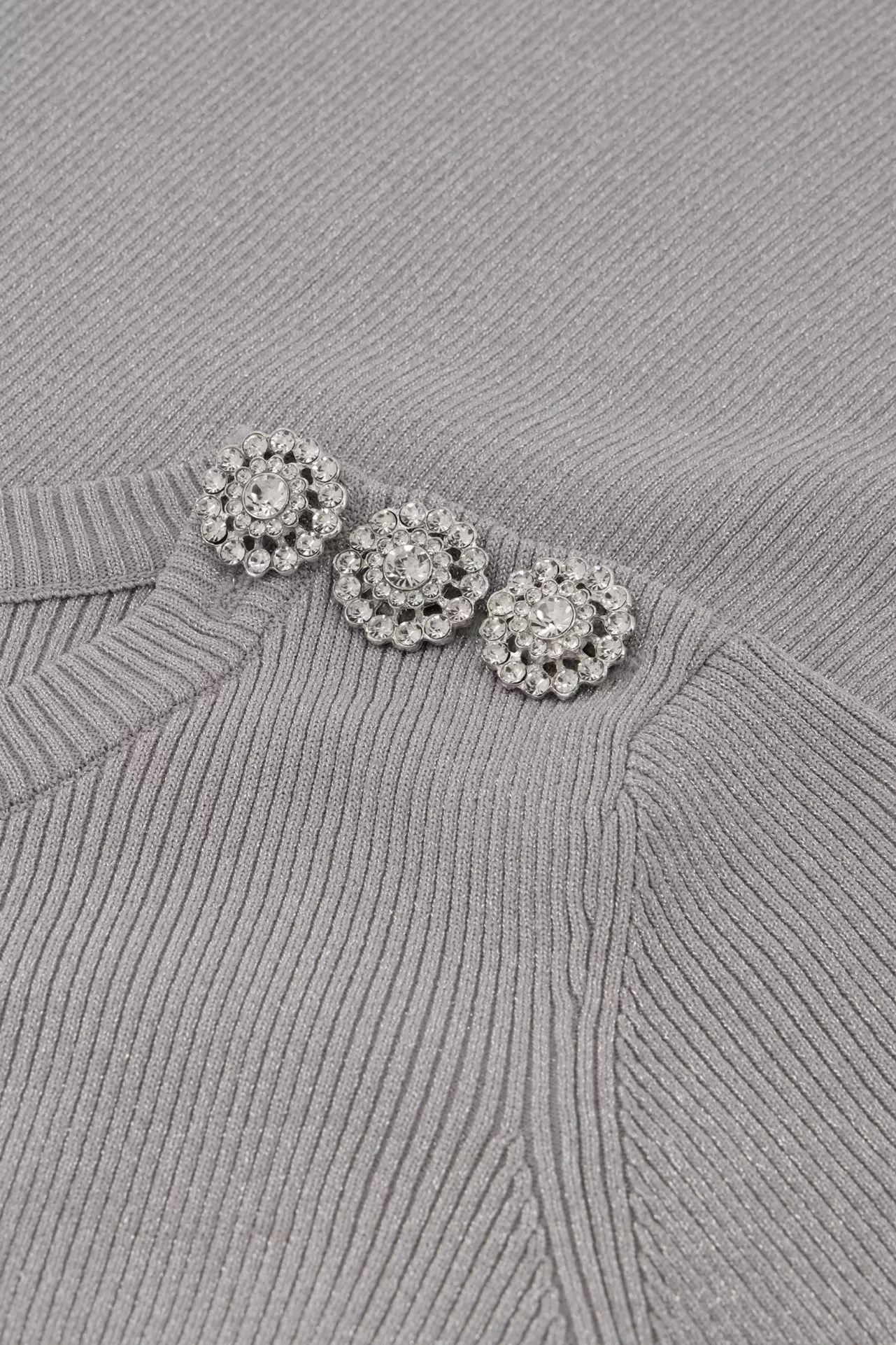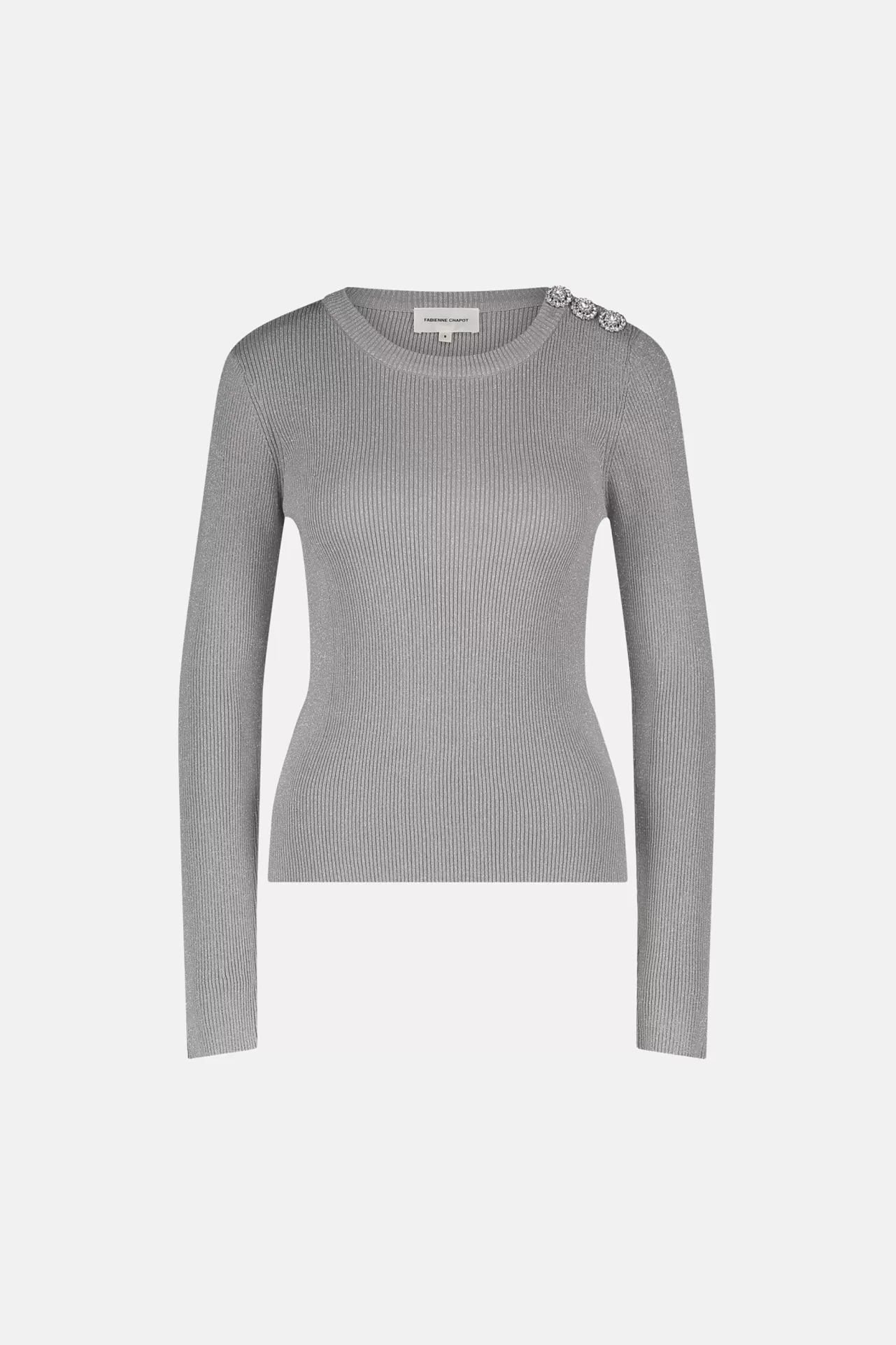 Deze grijze damestrui met lange mouwen is een veelzijdig stuk voor elke gelegenheid. De trui heeft een ronde hals, mouwen met lange boorden en drie knoopdetails op de schouder. Maak je outfit af door de trui te combineren met een van onze jeans voor de perfecte alledaagse look.