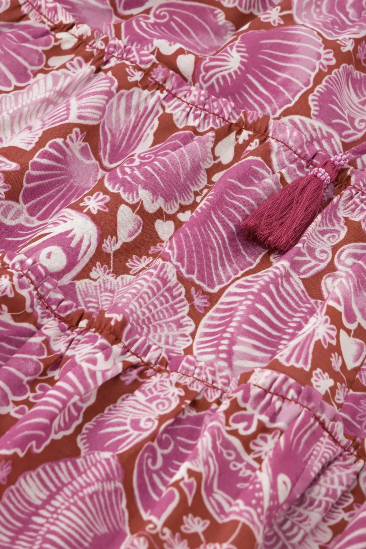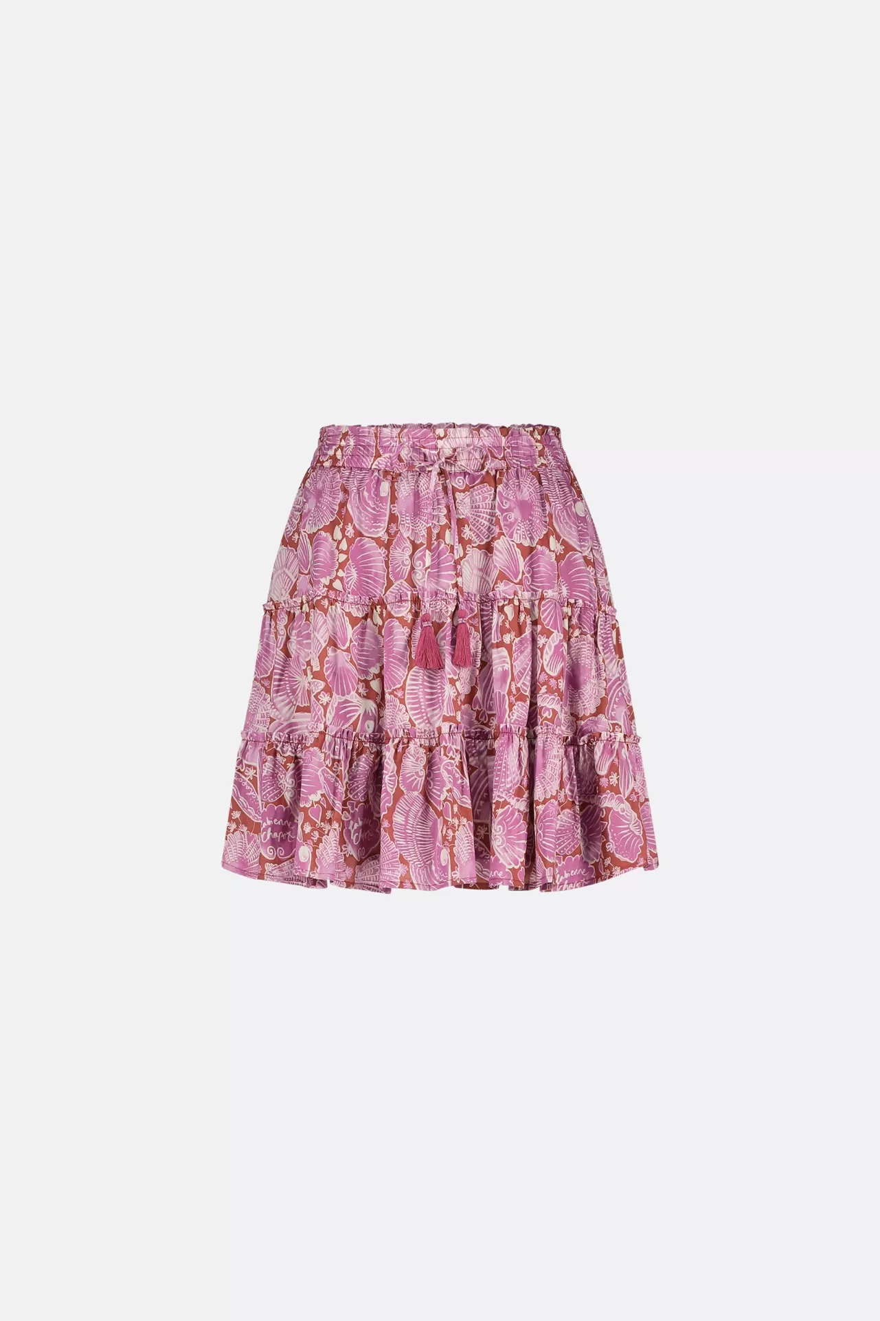 Deze dames rok met plooien voegt een leuke touch toe aan je outfit, met de rode en roze print. Deze mini-rok, gemaakt van 100% biologisch katoen, heeft een losse pasvorm en een stijlvolle strik rond de taille, wat comfort en flair biedt. Creëer een casual maar chique outfit door de rok te combineren met de Raf Pullover en Monica Knot Mule, perfect voor elke gelegenheid.