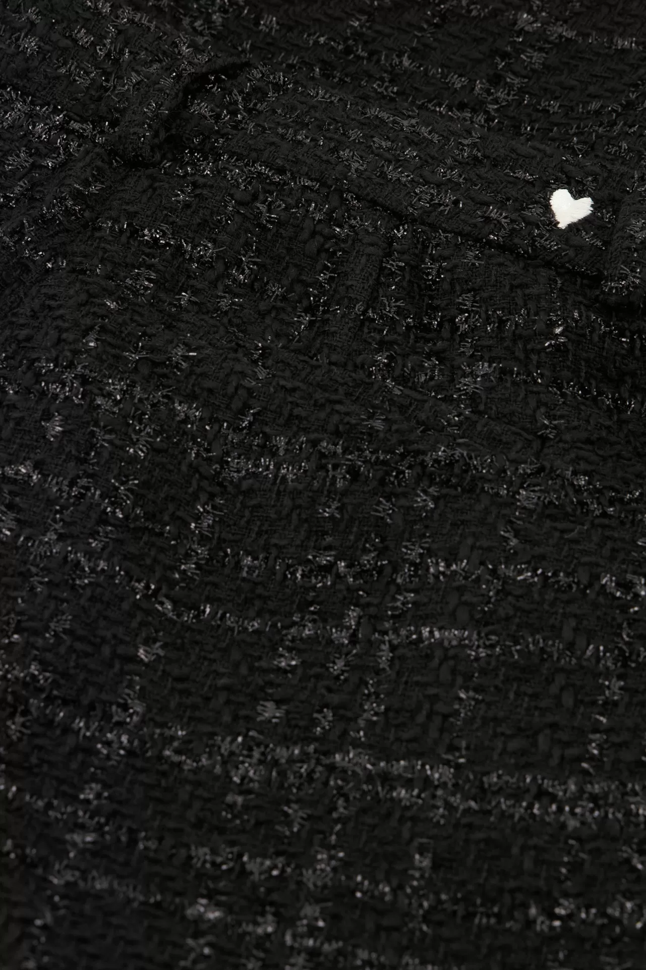 Deze zwarte dames tweed broek met een rechte pasvorm heeft een subtiele glans, perfect voor avondgelegenheden. Gemaakt van 100% gerecycled polyester, wat het een van onze meer verantwoorde stijlen maakt. Combineer deze broek met de bijpassende Twinnie Tweed Top voor een chique en matchin look.