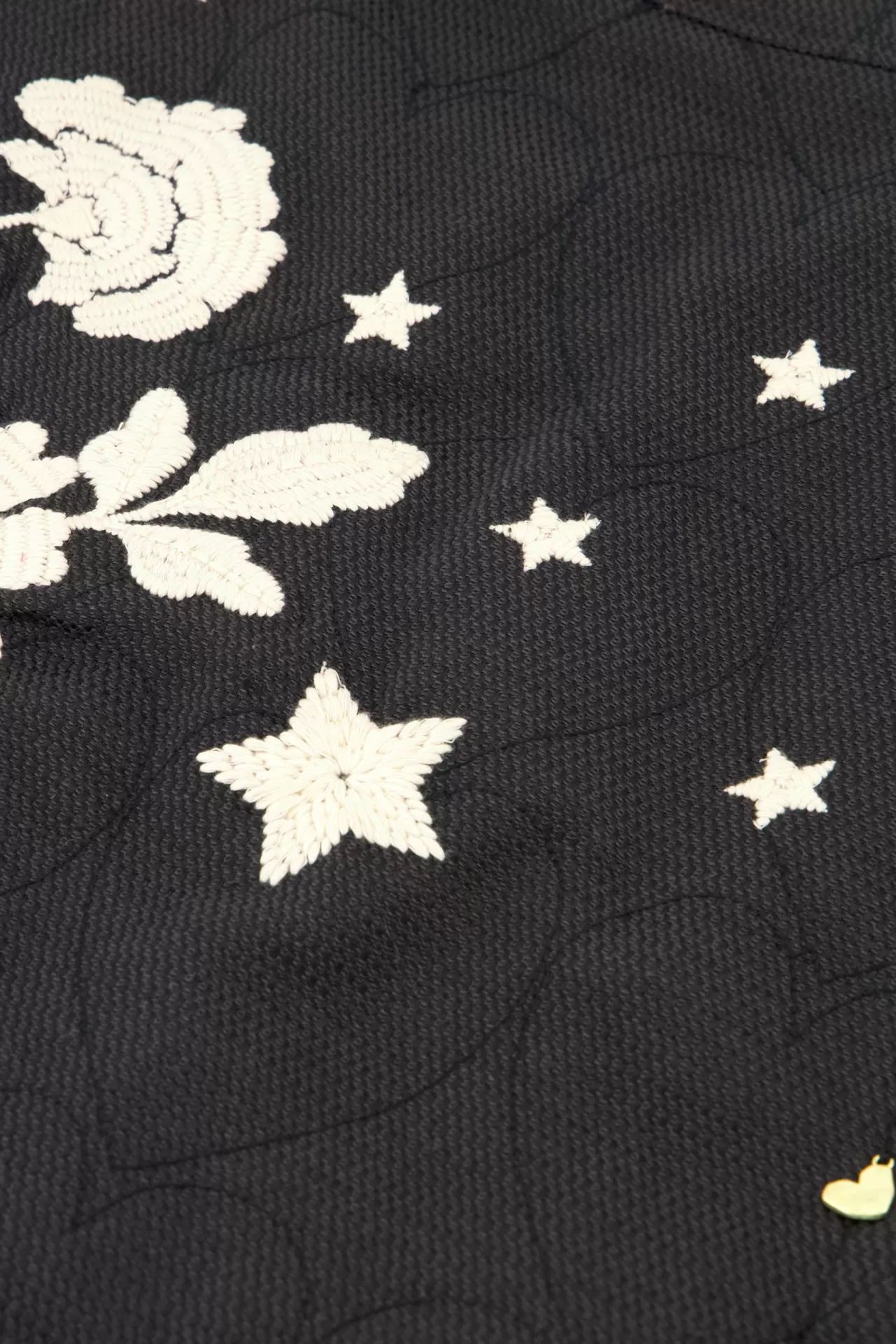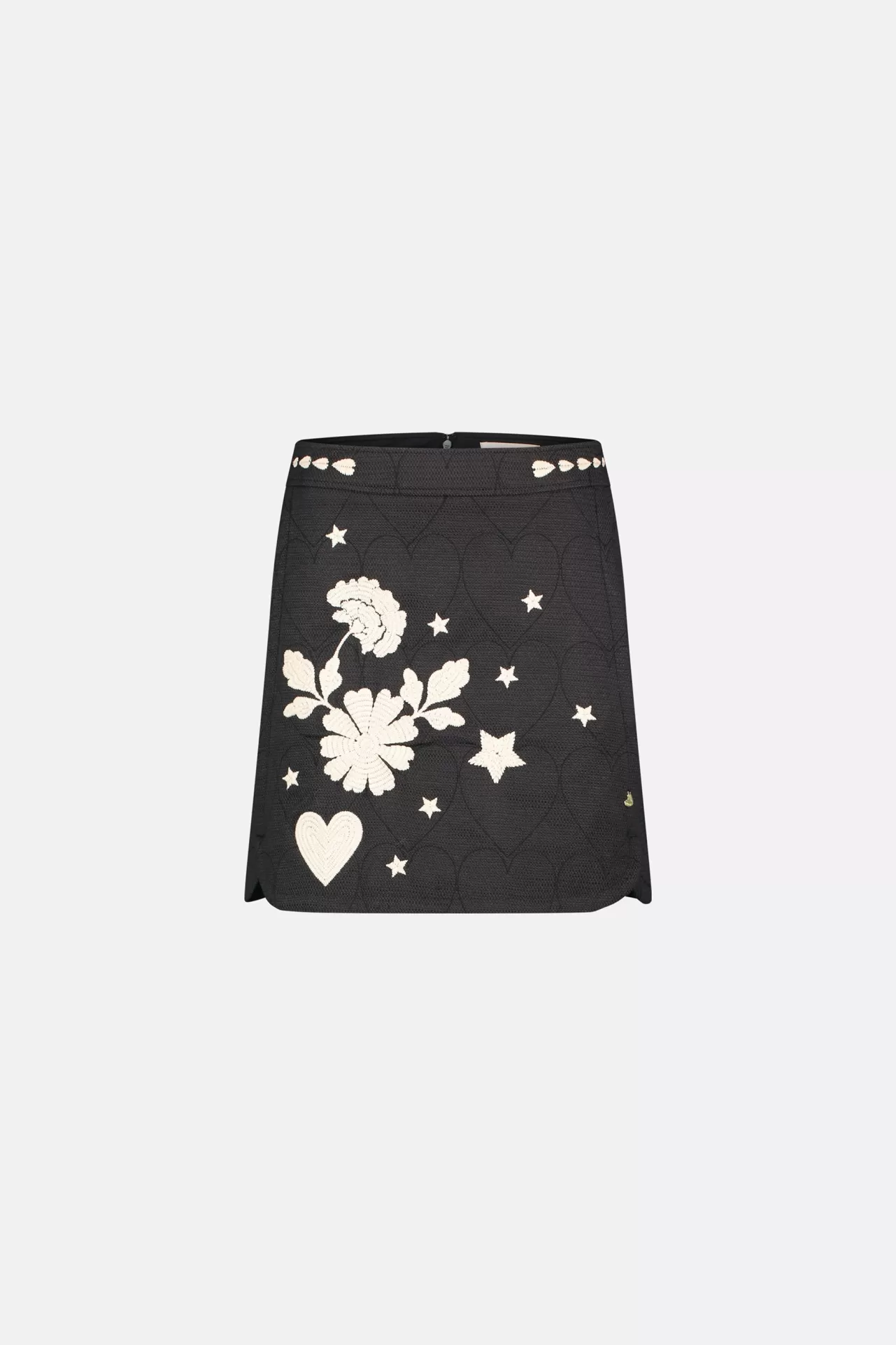 Deze zwarte dames minirok met bloemen-, hart- en sterrendetails is perfect voor zowel casual als feestelijke gelegenhede…