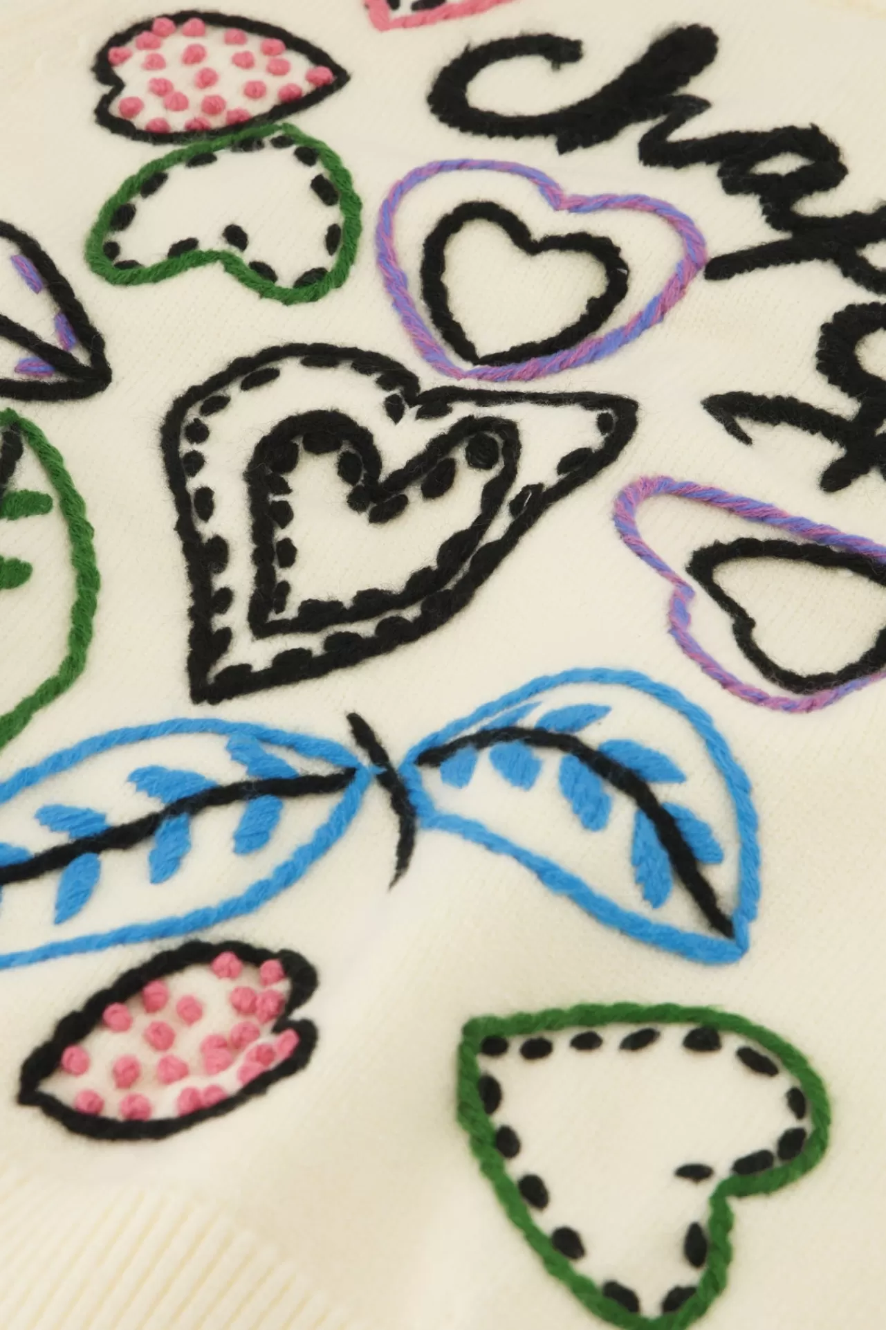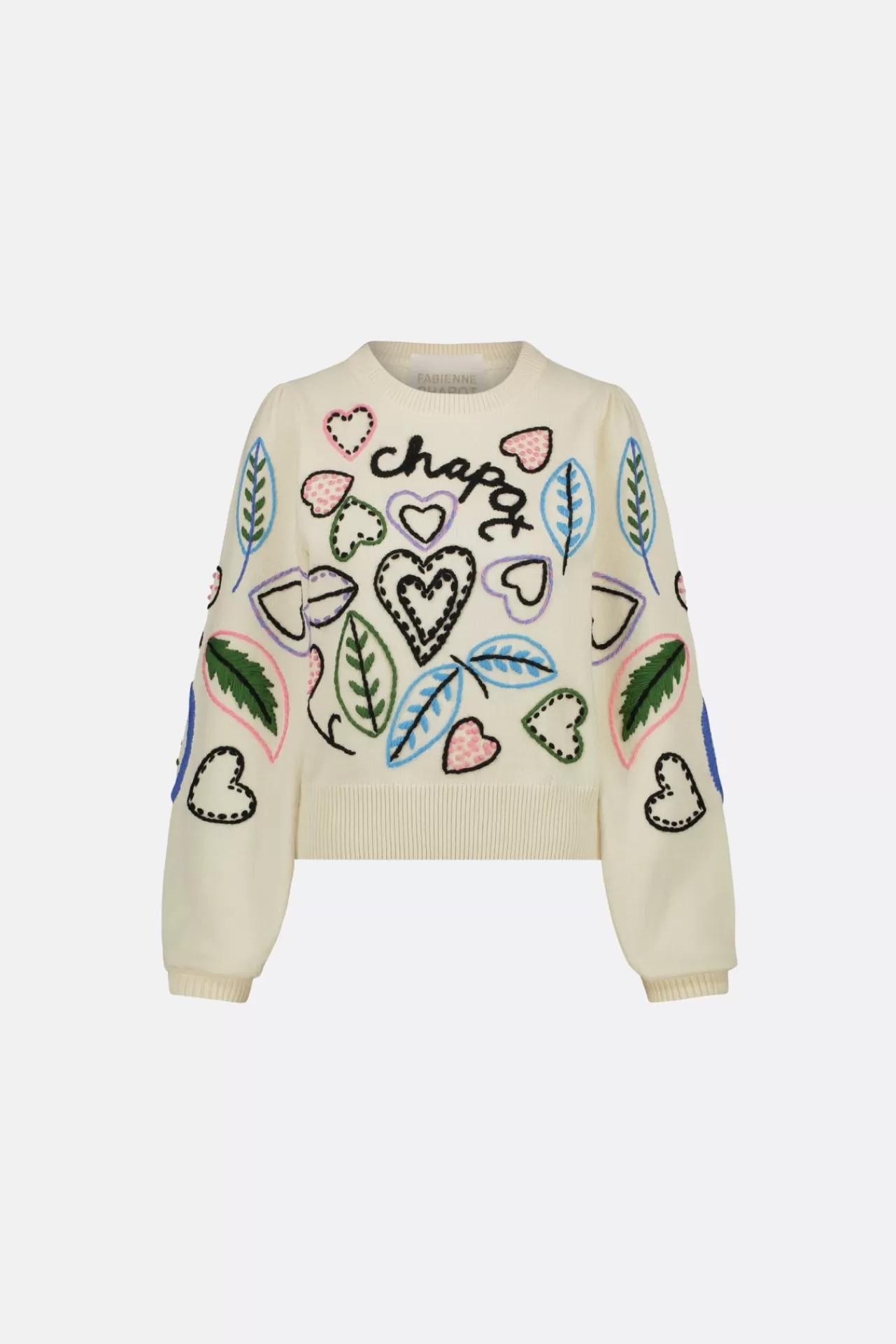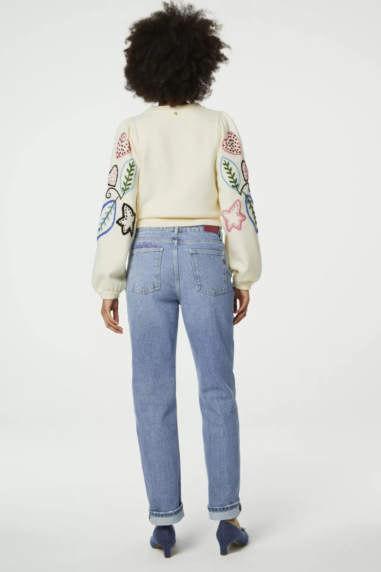 Deze beige dames trui heeft een ronde hals, lange mouwen en veelkleurige borduursels over de hele trui. Gemaakt van een mix van materialen. Combineer deze trui met onze Bonnie jeans met wijde pijpen voor een casual maar stijlvolle look.
