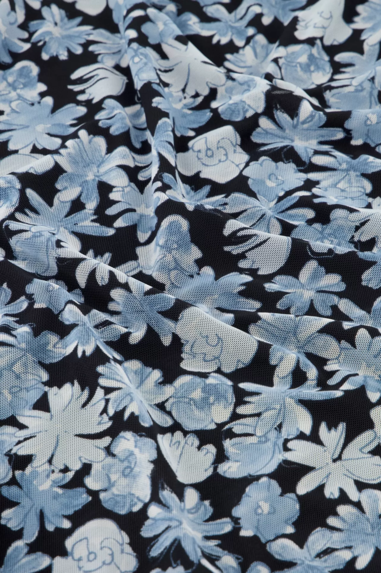 Deze mesh jurk heeft een slim fit, lange mouwen en een ronde halslijn, met een zwart-blauwe bloemenprint. Gemaakt van 94…
